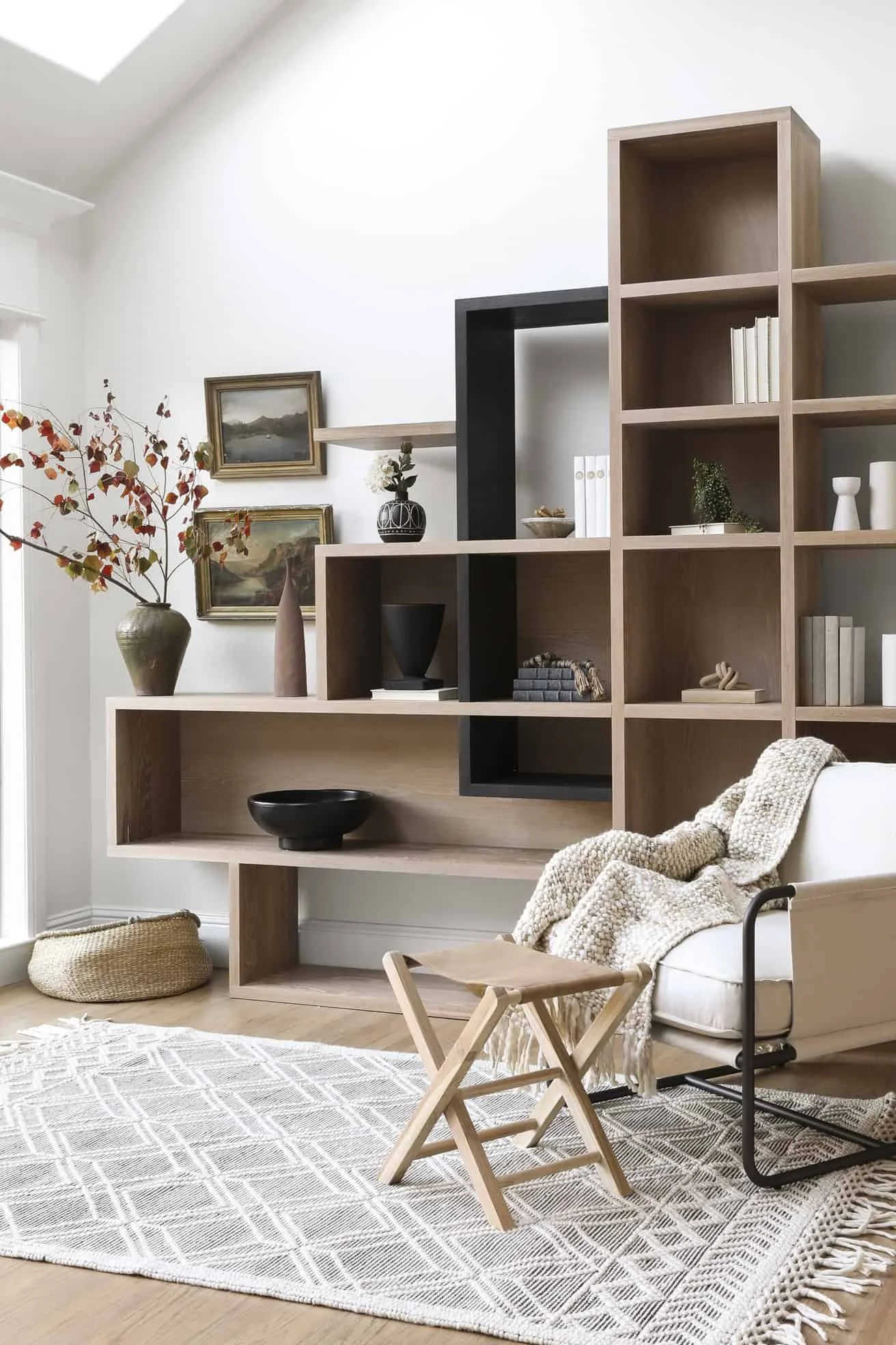 +Minimalist but with warmth from textures and textiles