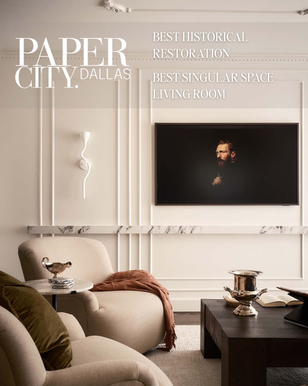 This living room earned top honors from both PaperCity’s Dallas Design Awards and Modern Luxury’s Design 9 Awards—a rare and deeply humbling recognition.